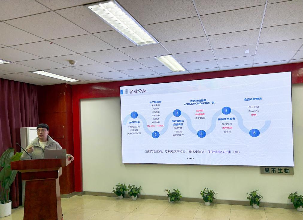 分享环节中,焦晓波学长主要结合凯莱英在全球CDMO(医药合同定制研发生产)领域的领军地位,详细介绍了企业的发展历程、小分子与化学大分子CDMO业务的技术突破成果及全球化战略布局。同时,他结合自身成功斩获六家生物医药企业录用通知的求职经历,向在场学子倾囊相授求职干货。焦晓波着重强调,求职前期准备务必充分,不仅要扎实掌握专业知识、梳理项目经历、打磨简历细节,更要提前调研目标企业的发展方向与岗位需求;而在求职过程中,态度与人品是叩开职场大门的关键,真诚谦逊的沟通姿态、踏实肯干的职业素养,远比单纯的技能展示更能打动招聘方。他还结合自身职业成长故事,叮嘱学子们在校期间要夯实专业基础,时刻关注行业技术创新动态,为未来职业发展筑牢根基。